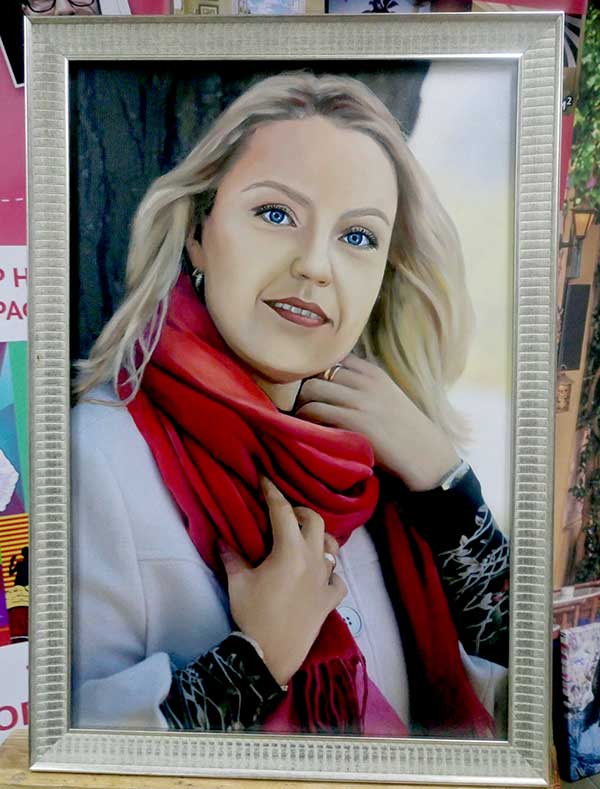 Мы подготовим для вас эскизы будущей картины на компьютере. Вы сможете выбрать любой фон, образ человека, компоновку вашего будущего шедевра. Это бесплатно! Согласовываем размер картины.