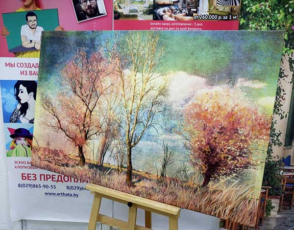 Печать фотографии на хлопковом холсте. Обработка картины фактурным акриловым гелем для придания эффекта масла