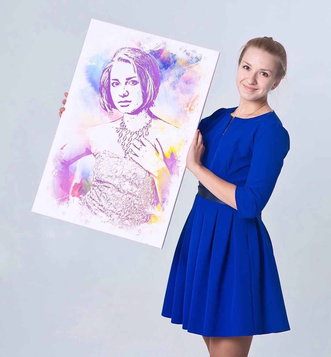 - Мы подготовим для вас эскизы будущей картины на компьютере. Вы сможете выбрать любой фон, образ человека, компоновку вашего будущего шедевра. Это бесплатно! Согласовываем размер картины.